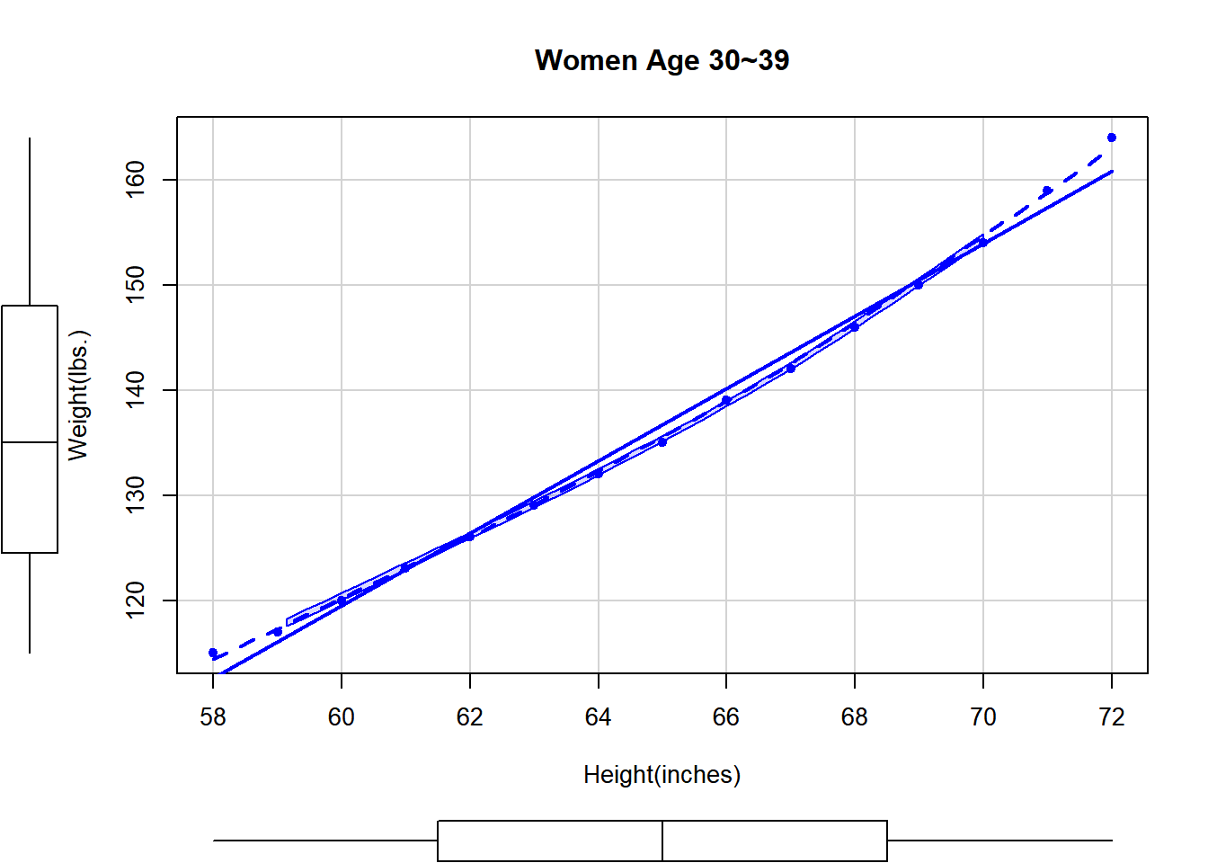 curve(23.37-0.03*x,add=TRUE,lty=2,col=2)